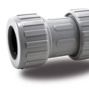 Acople de compresión plástico (Junta Dresser) para reparar o conectar en forma rápida y sencilla todo tipo de caños, ya sean plásticos o de otros materiales